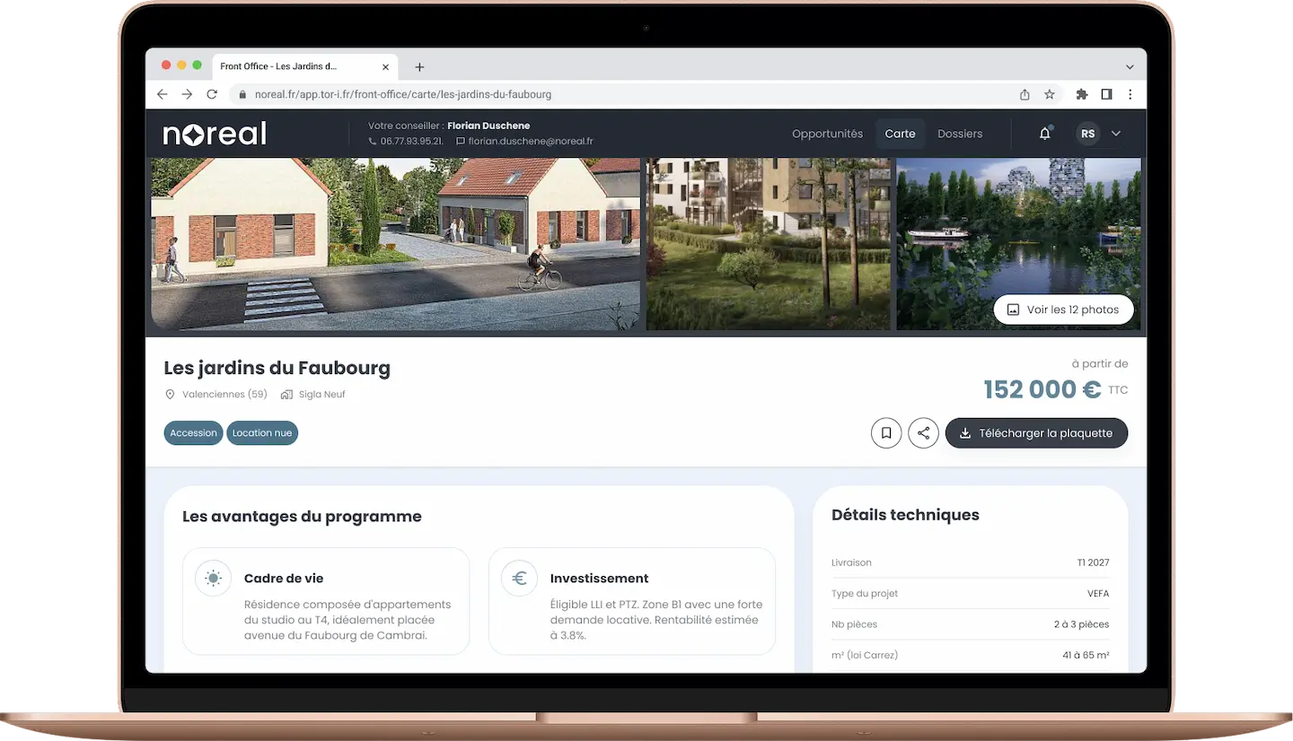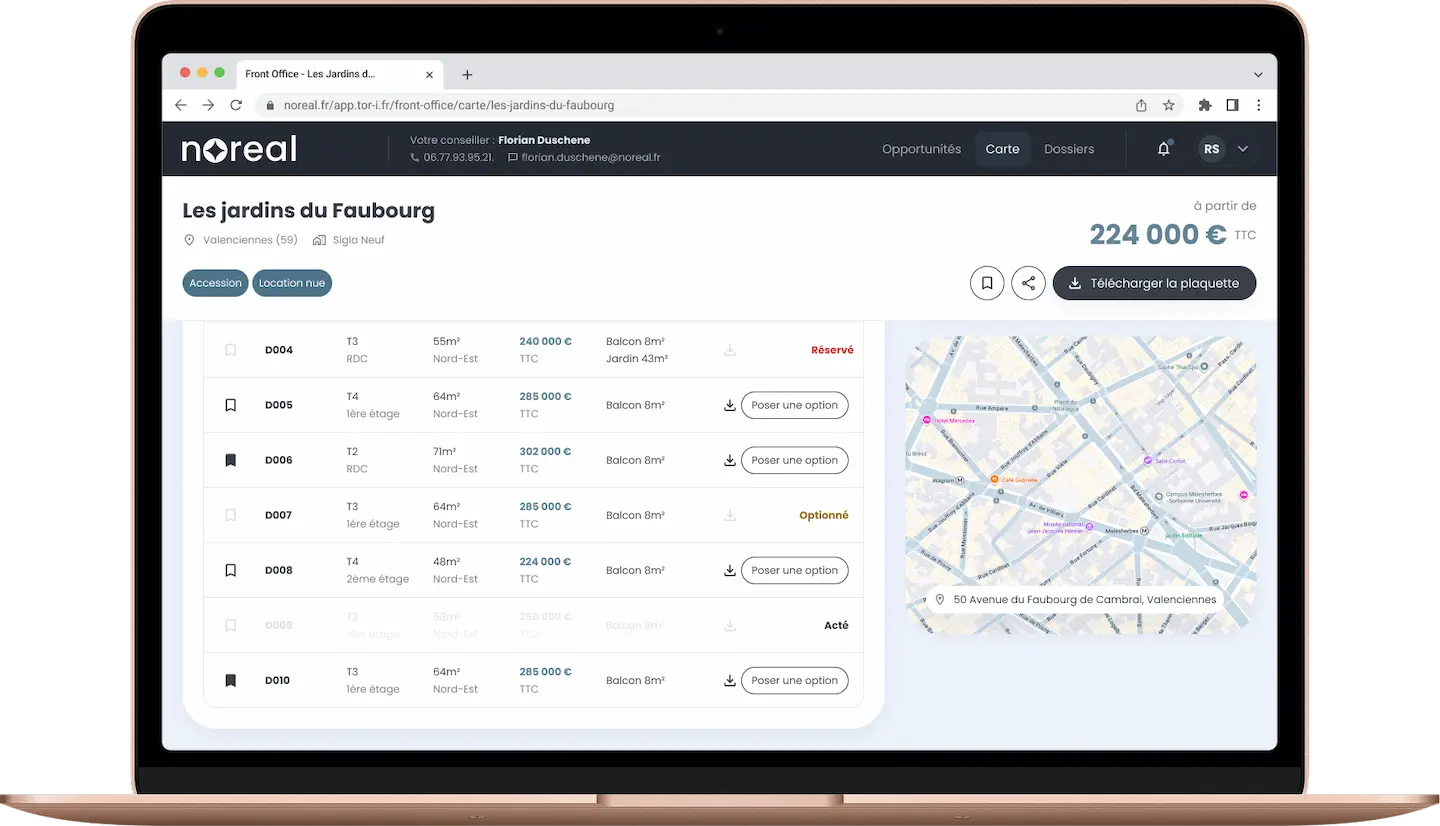 Un point d’accès central pour les promoteurs, les réseaux de distribution et leurs clients, conçu pour simplifier les flux, sécuriser les décisions et accélérer les ventes.